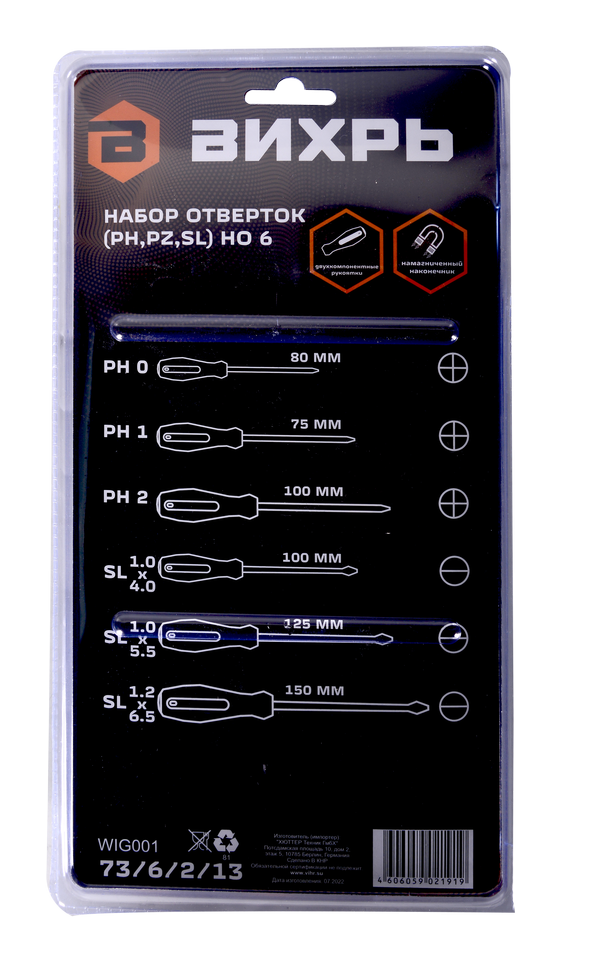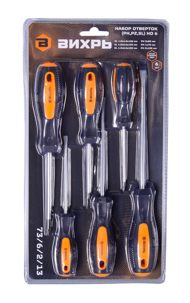 Набор отверток Вихрь НО 6 предназначен для различных видов работ. В комплект входит 6 отверток разных размеров: