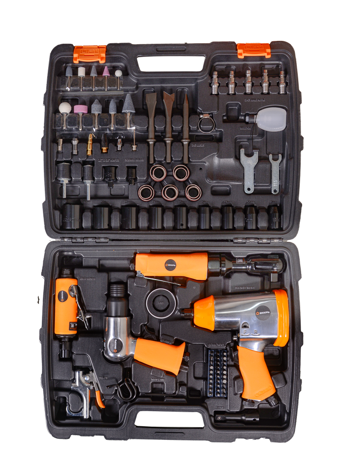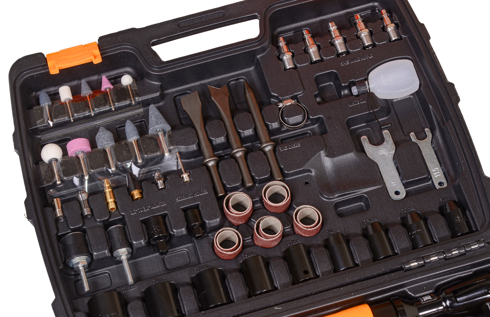 Набор пневмоинструмента Вихрь НП-90 - это набор из пяти наиболее необходимых пневмоинструментов для выполнения различных работ, работающих от компрессора и использующих энергию сжатого воздуха. Благодаря универсальному разъему пневмоинструмент подойдет для работы на любом компрессоре.