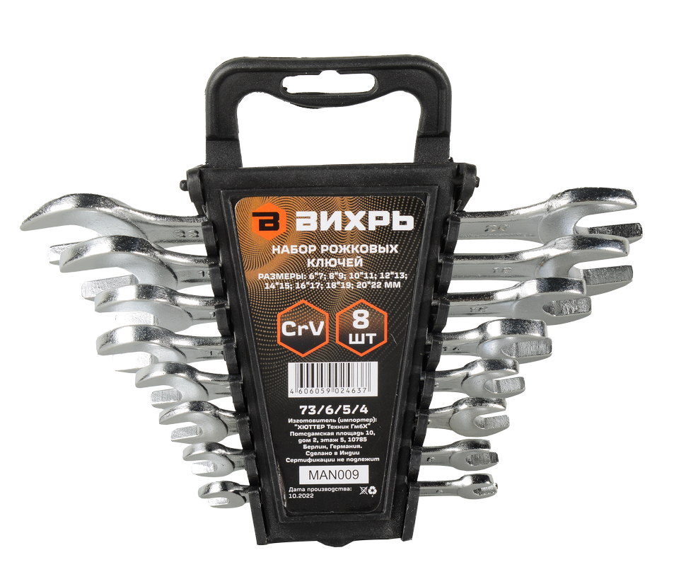 Набор накидных ключей Вихрь состоит из 8 штук с размерами от 6 до 17 мм: