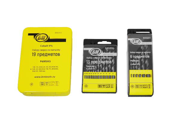 Набор сверл по металлу Р6М5К5 13 пр. (1-6,5 мм) метал. упаковка БМ