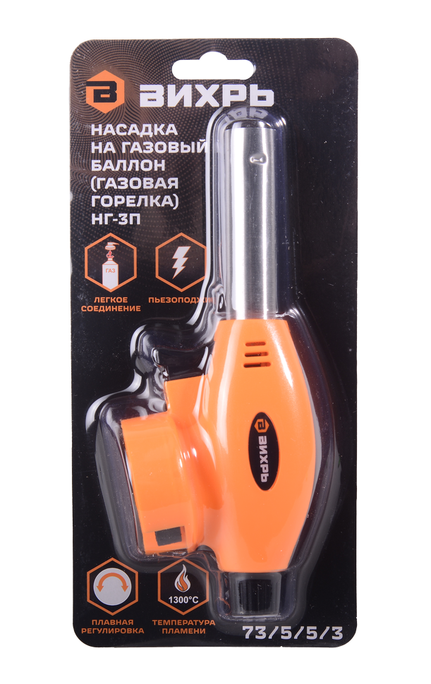 Газовая горелка служит для газопламенной обработки, резки и сварки металлических и других изделий. Присоединяется к газовым баллонам 220 гр. с цанговым соединением. Максимальный расход составляет 80 гр/ч. Температура пламени в зоне факела достигает 1300 °С
