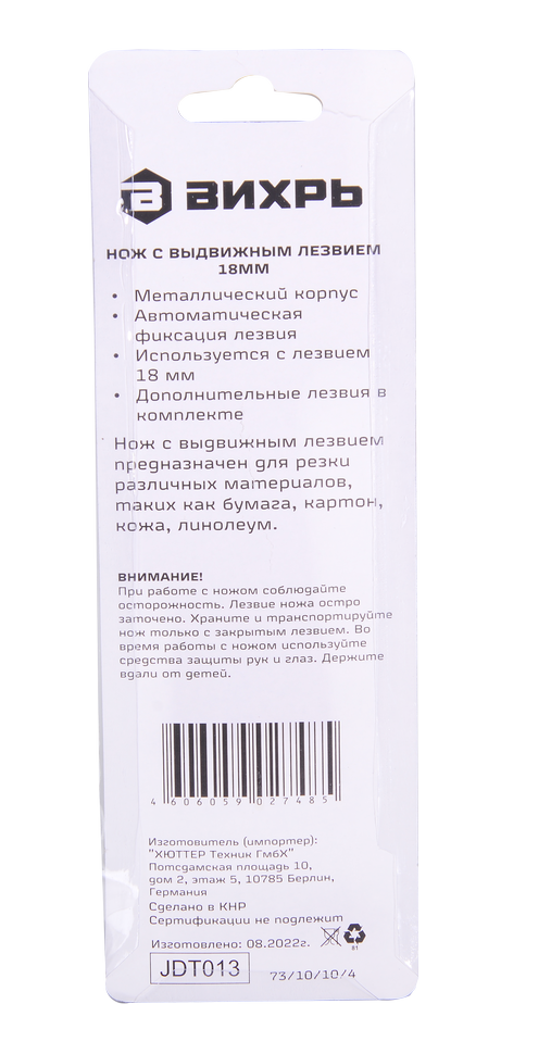 Нож с выдвижным лезвием Вихрь подходит для широкого спектра работ - от резки бумаги до резки ковровых покрытий. Сегментированные лезвия можно отламывать по мере износа режущей части и легко заменять на новые.