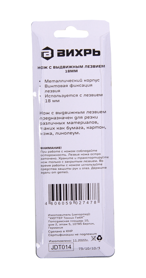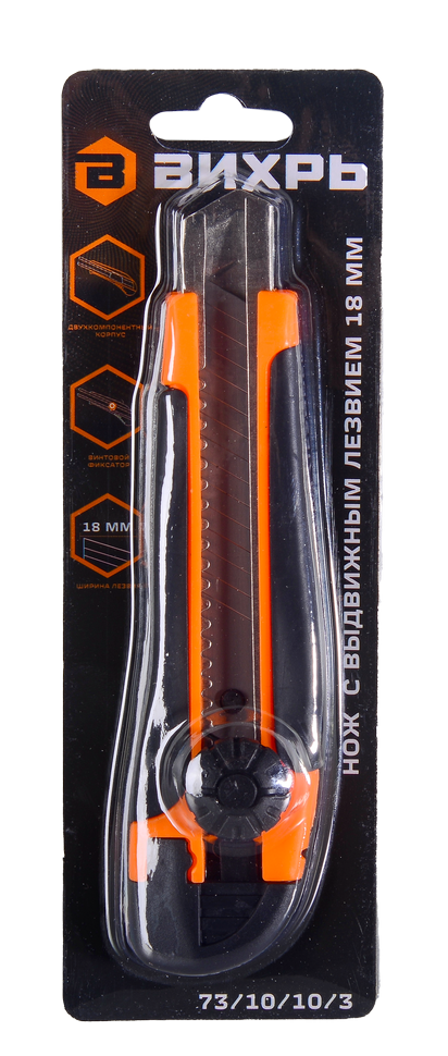 Нож с выдвижным лезвием Вихрь подходит для широкого спектра работ - от резки бумаги до резки ковровых покрытий. Сегментированные лезвия можно отламывать по мере износа режущей части и легко заменять на новые.