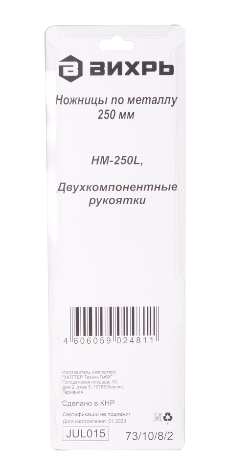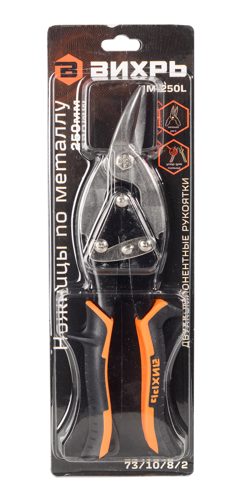 Ножницы по металлу 250 мм., НМ-250L, левый рез, Вихрь позволяют резать металлические листы, проволоку и другие материалы. Инструмент имеет прочную конструкцию, выполненную из стали, длина 250 мм и левый тип реза.