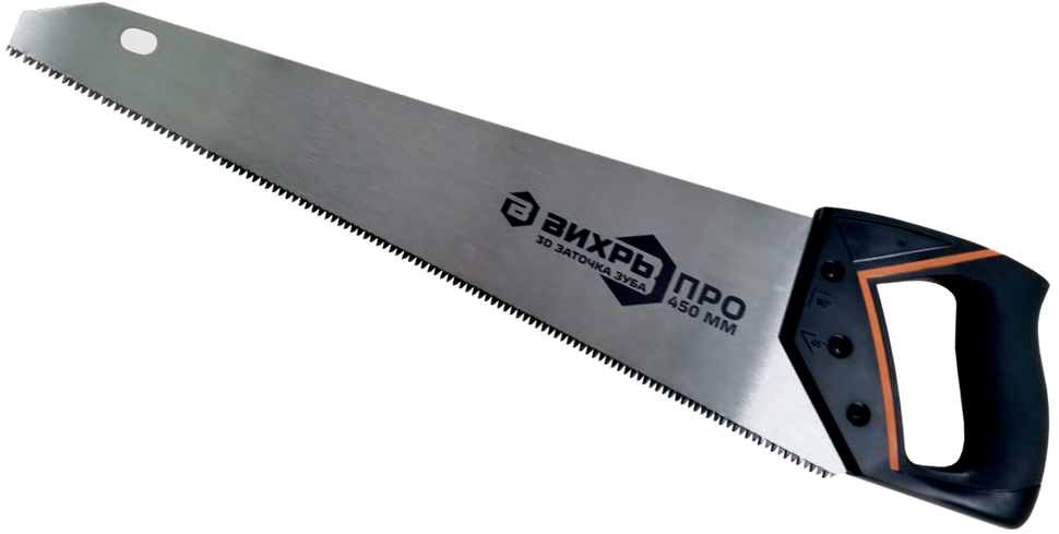 Ножовка ПРО 450 мм 3D заточка SK5 полотно 2 комп.рукоятка Вихрь предназначена для столярных и плотницких работ, пригодится во время ремонта и будет полезна в быту. Рез вдоль и поперек волокон всех видов материалов. Профессионально пилит древесину, фанеру, ДСП.