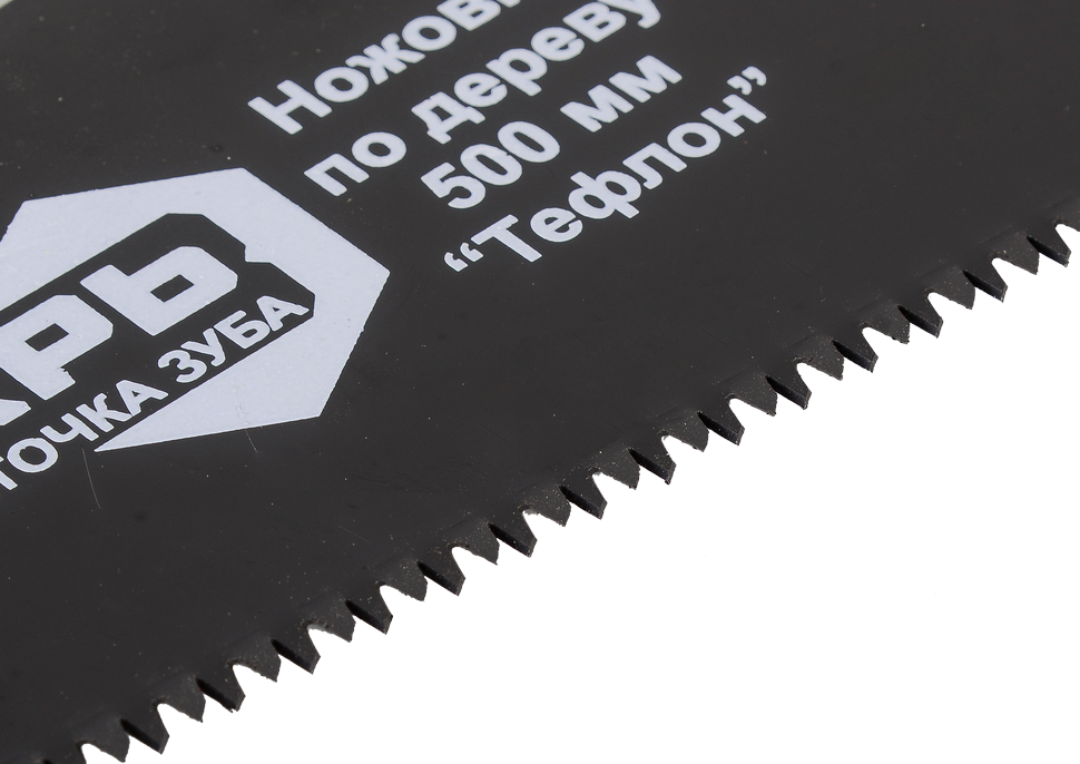 Рабочая часть лезвия покрыта слоем тефлона, что предотвращает застревание ножовки в материале и обеспечивает легкость ее движения.