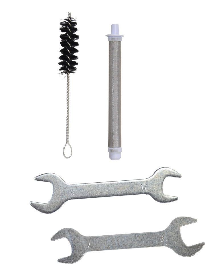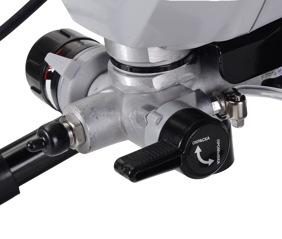 Максимальное рабочее давление — 210 бар, что позволяет равномерно распределять краску тонким слоем, создавая качественное покрытие без подтёков и дефектов. Удобное сопло диаметром 517 (0,017") позволяет точно регулировать толщину наносимого слоя и экономить расход краски.