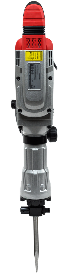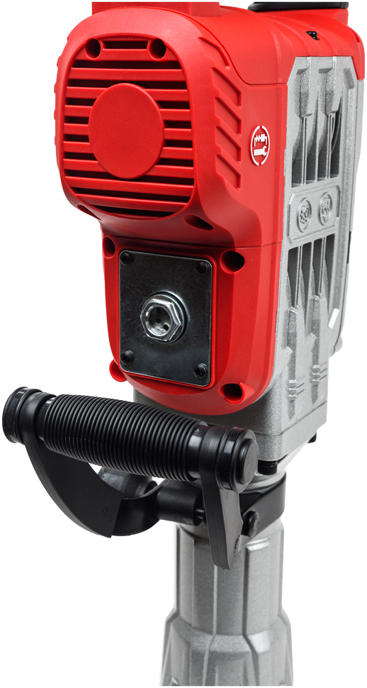 Отбойный молоток имеет удобную обрезиненную основную рукоять с кнопкой блокировки для непрерывной работы. Боковая рукоятка устанавливается в удобном положении без применения дополнительного инструмента и обеспечивает полный контроль работы.