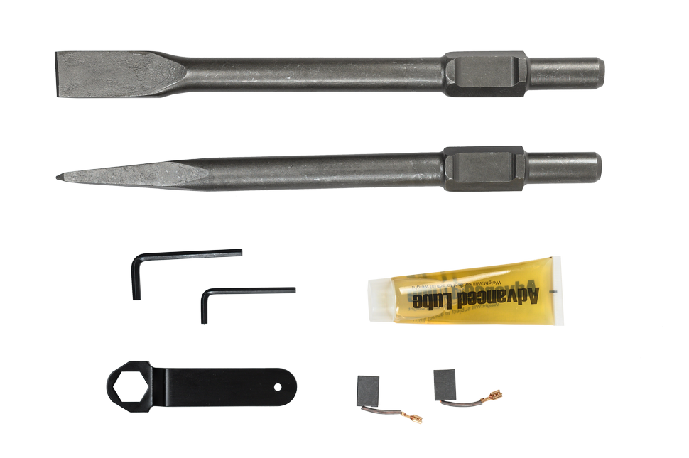 - В комплекте с устройством поставляется пика и зубило вместе с тюбиком для смазки. Молоток полностью укомплектован и готов к использованию.