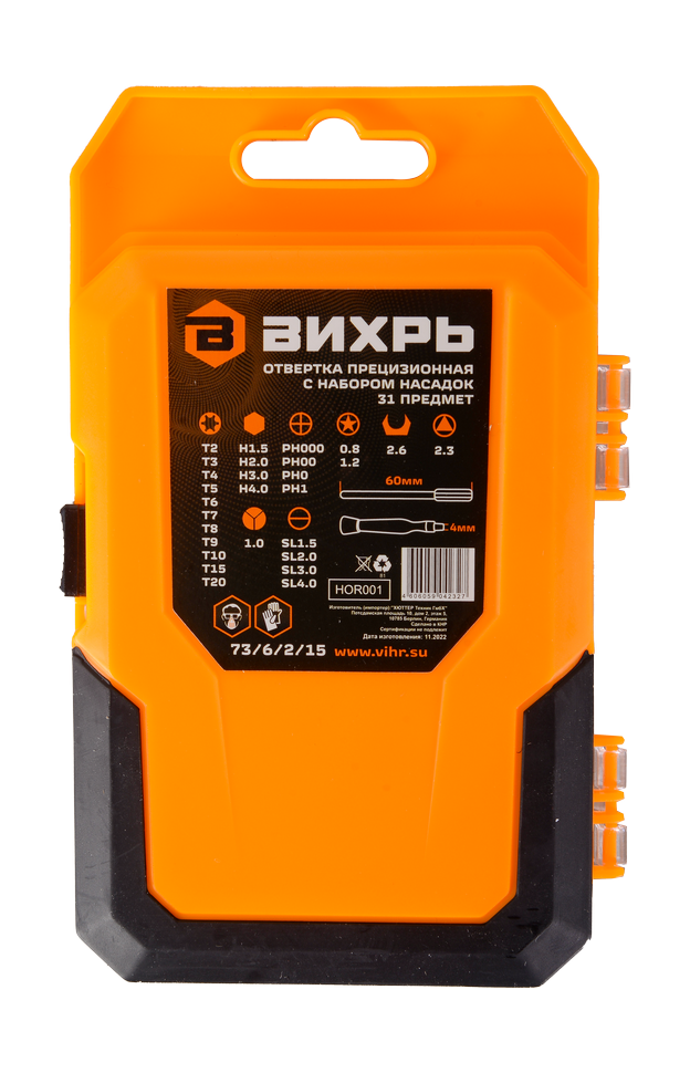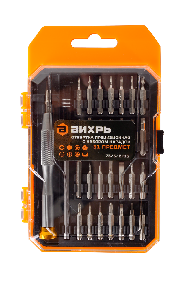 Отвертка Вихрь прецизионная с набором насадок предназначена для работы с мелкими деталями, электроникой, часами, мобильными устройствами и другими предметами, требующими точности.