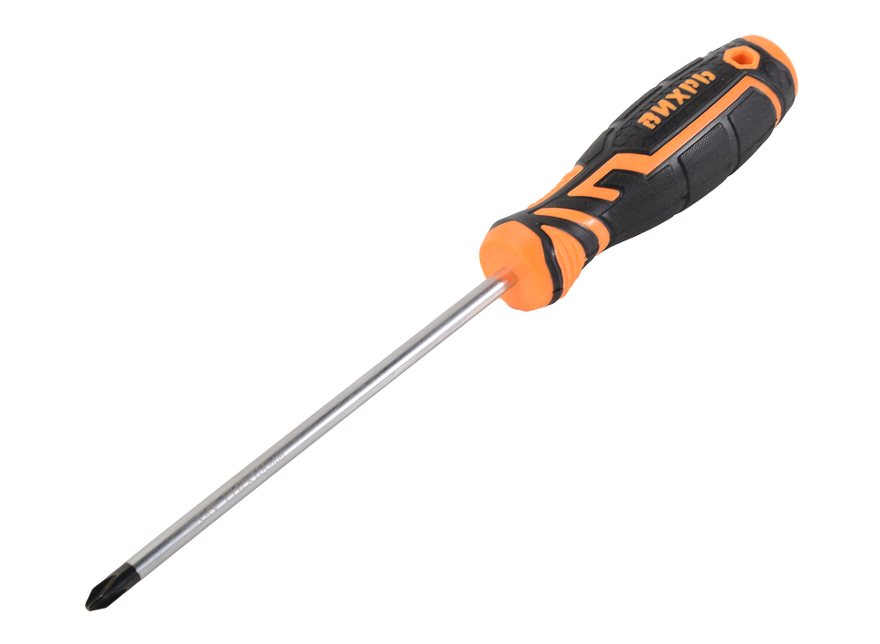 Отвёртка крестовая ВИХРЬ PH2 150мм предназначена для монтажных и демонтажных работ крепежных элементов. Стержень из хромванадиевой стали (CrV) имеет длину 15 см, закален и имеет хромоникелевое покрытие. Наконечник намагничен и имеет типоразмер шлица PH2. Двухкомпонентная рукоятка обеспечивает удобный хват и не скользит при работе.