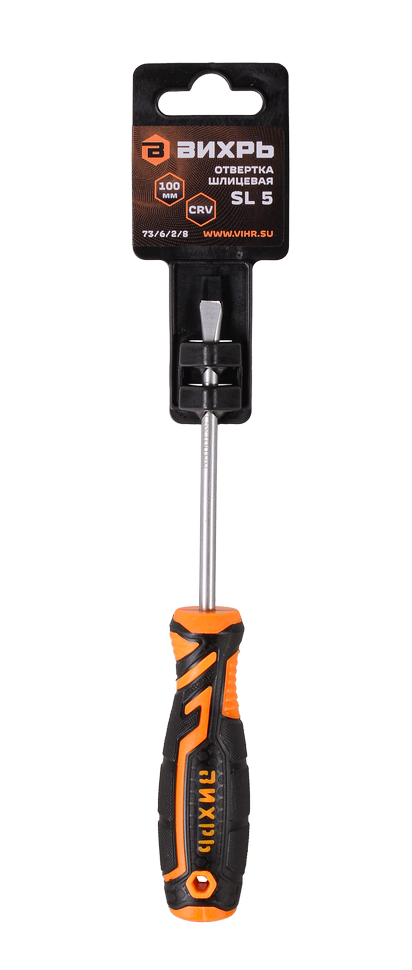 Отвёртка шлицевая ВИХРЬ SL5 100мм предназначена для монтажных и демонтажных работ крепежных элементов. Стержень из хромванадиевой стали (CrV) имеет длину 10 см, закален и имеет хромоникелевое покрытие. Наконечник намагничен и имеет типоразмер шлица SL5. Двухкомпонентная рукоятка обеспечивает удобный хват и не скользит при работе.