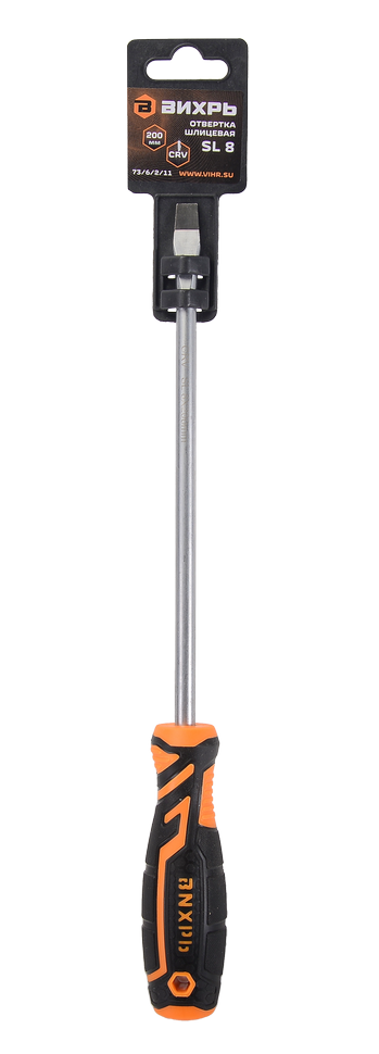 Отвёртка шлицевая ВИХРЬ SL8 200мм предназначена для монтажных и демонтажных работ крепежных элементов. Стержень из хромванадиевой стали (CrV) имеет длину 20 см, закален и имеет хромоникелевое покрытие. Наконечник намагничен и имеет типоразмер шлица SL8. Двухкомпонентная рукоятка обеспечивает удобный хват и не скользит при работе.