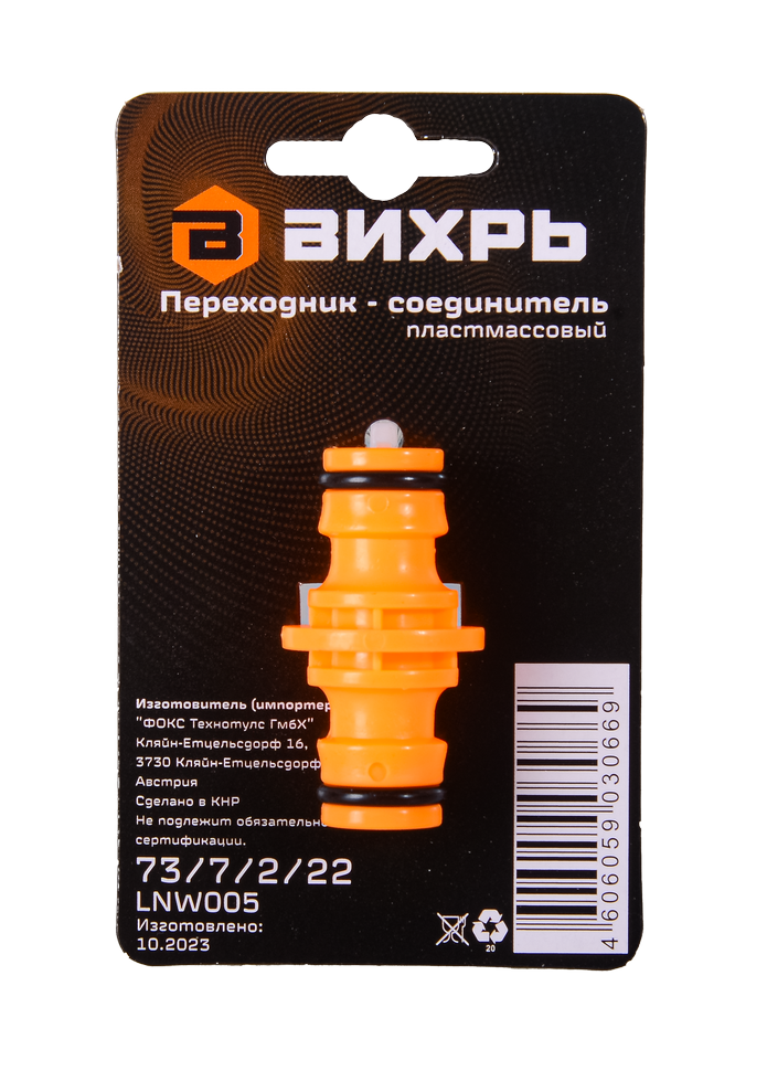 Переходник соединитель 1/2" Вихрь – это элемент водопроводной системы, который используется для соединения шлангов одного диаметра - 1/2 дюйма. Переходник-соединитель выполнен из пластмассы и устойчив к коррозии. Он легко и быстро устанавливается и обеспечивает надежное соединение. Переходник имеет специальные резиновые уплотнители, что обеспечивает высокую степень герметичности и предотвращает протечку.
