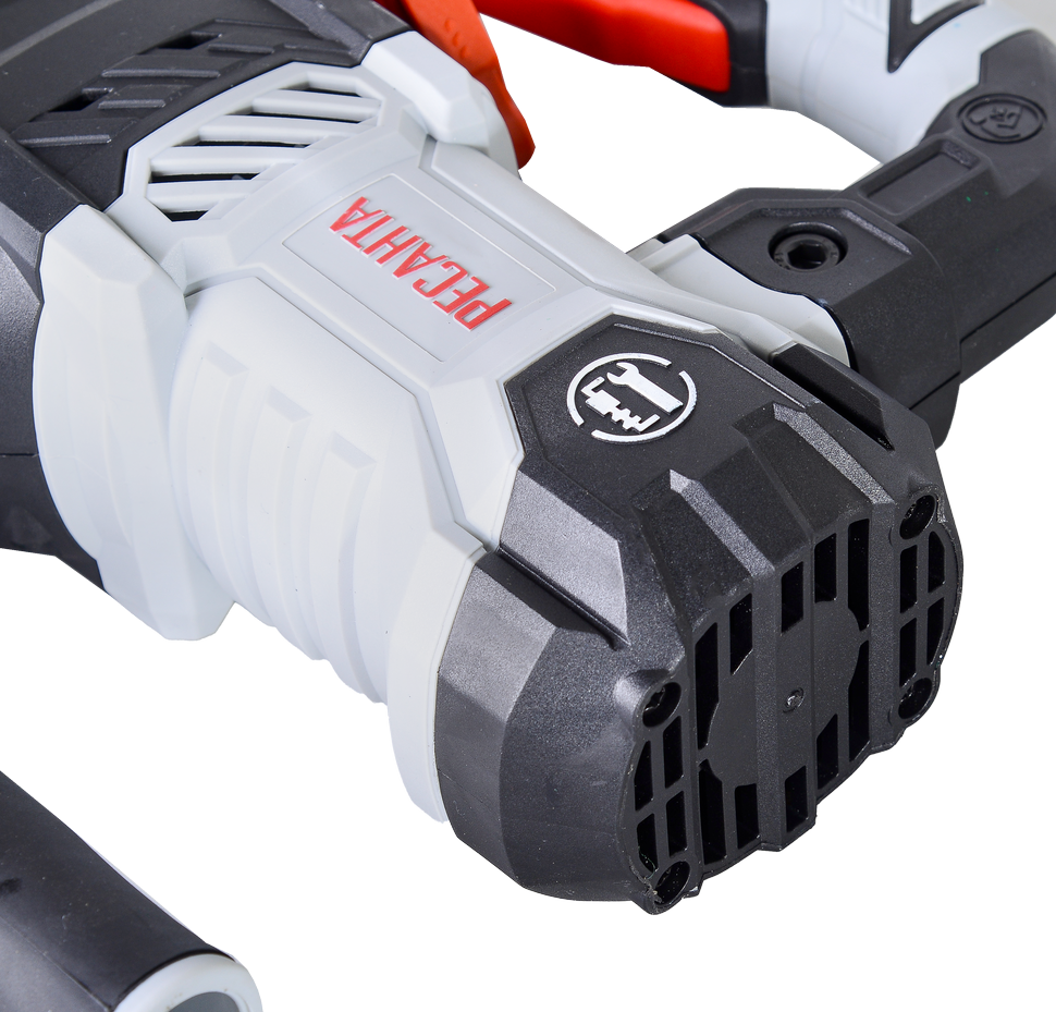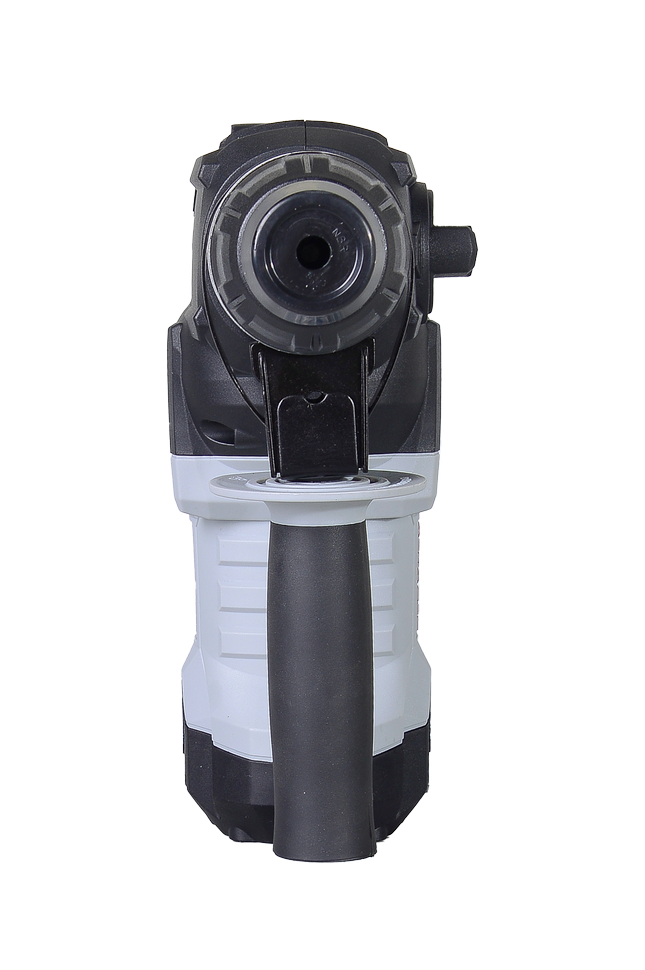 Устройство работает от сети. Электрический двигатель обеспечивает работу ударного механизма, который благодаря особой конструкции передает мощный ударный импульс к зажимному патрону и зафиксированной в нем оснастке. По сравнению с обычными ударными дрелями перфоратор имеет более высокую силу удара. Это позволяет инструменту легко справляться со сверлением в самых твердых поверхностях. Модель может работать в 3 режимах: удара, сверления с ударом, сверления без удара. Инструмент оснащен предохранительной муфтой на случай заклинивания, системой защиты от попадания внутрь пыли, антивибрационной системой. Блокировка кнопки включения исключает случайный запуск электродвигателя. Устройство оснащено кабелем 2-метровой длины и дополнительной ручкой с резиновым покрытием.