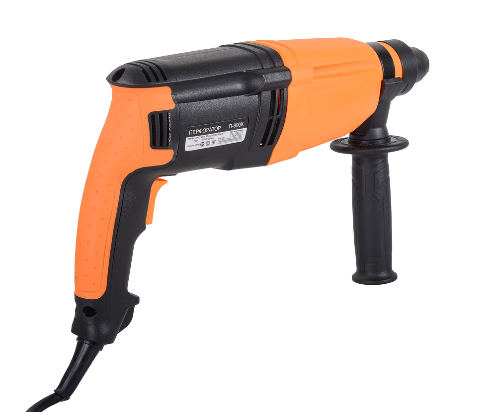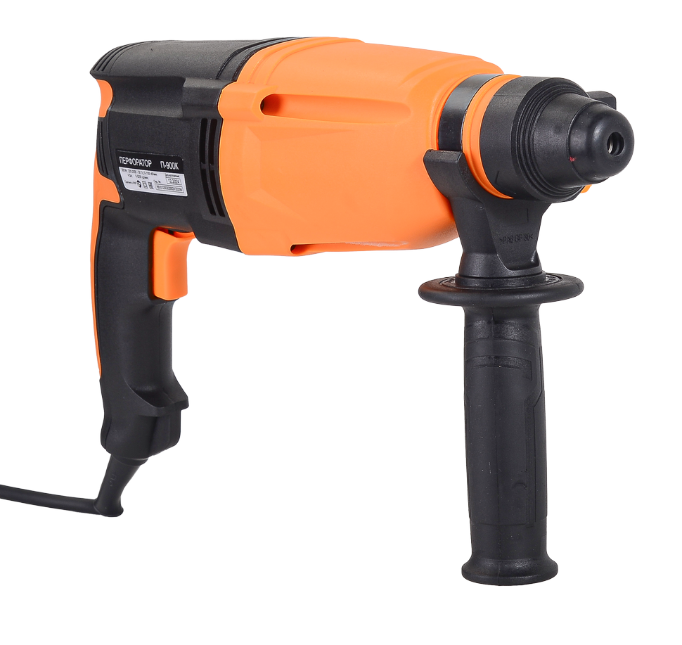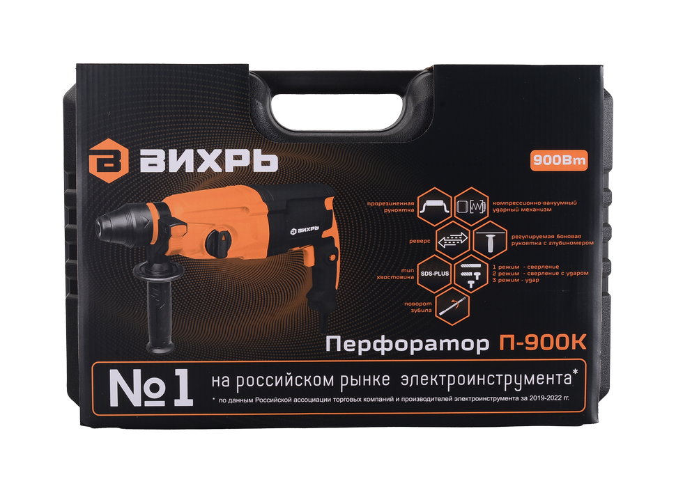 Перфоратор Вихрь П-900К обладает весом 2,7 кг. Настройка углового положения инструмента обеспечивают удобство использования в труднодоступных местах.