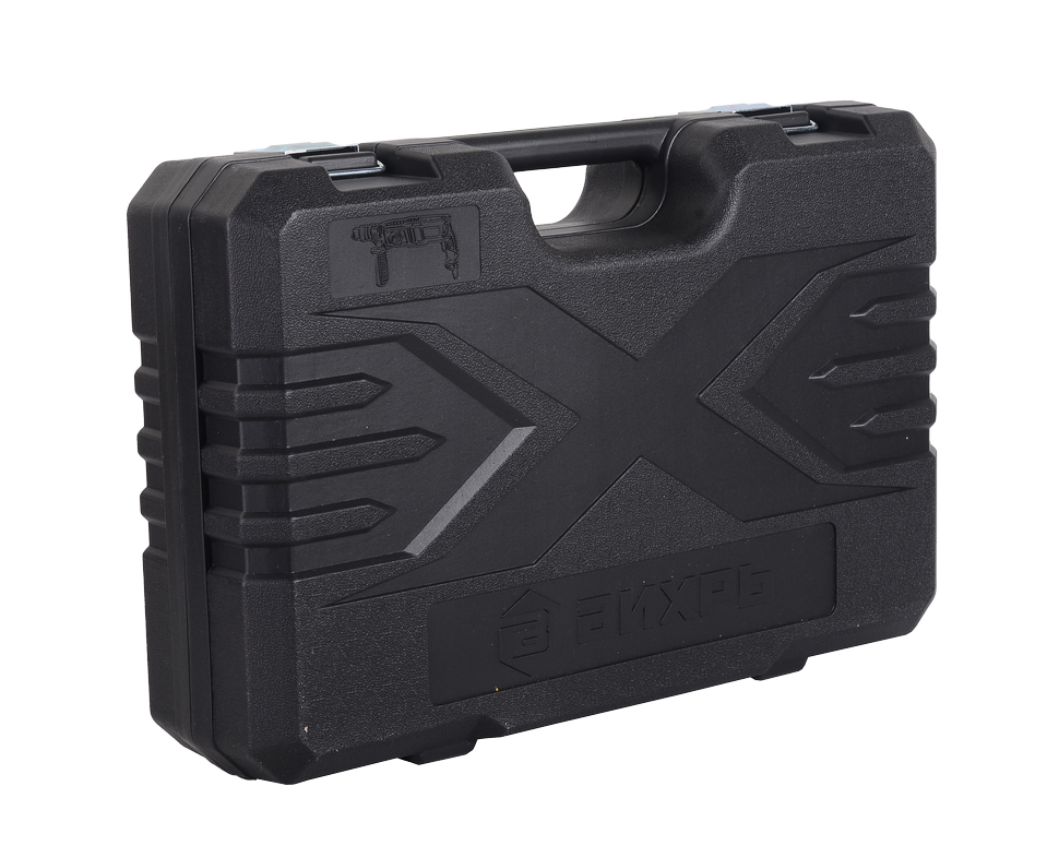 Электроинструмент имеет функцию реверсивного хода. Применяется для извлечения застрявшего бура из материала. Блокировка случайного включения исключает возможность непреднамеренного нажатия пуска. Есть возможность блокировки кнопки во включенном состоянии в случае длительной работы. Дополнительная рукоятка позволяет эффективно распределять усилия и снижает вибрацию. В комплект входит кейс для хранения.