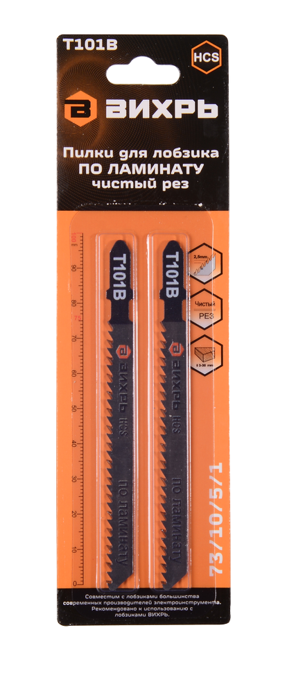 Пилки для лобзика Т101В Вихрь 73/10/5/1 используются с электролобзиками для выполнения чистого пропила ламината, толщиной от 3 до 30 мм.