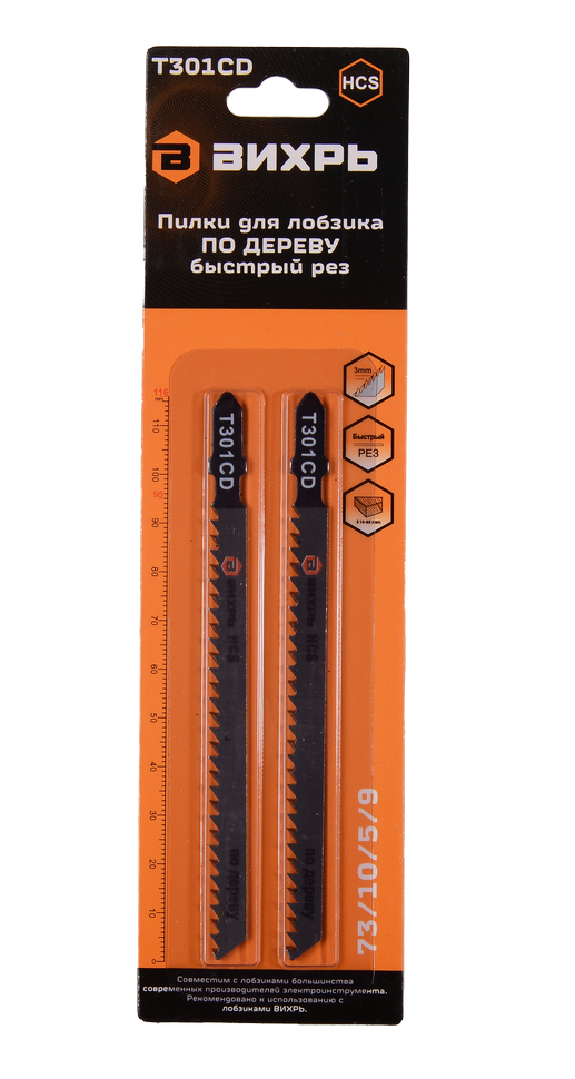 Пилки для лобзика Т301CD Вихрь 73/10/5/9 используются с электролобзиками для выполнения чистого пропила различных пород дерева, толщиной от 10 до 65 мм.