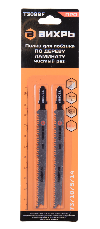 Пилки для лобзика ВИХРЬ Т308ВF подходят для работы с электролобзиками для резки чистых контуров. Они могут использоваться для работы с деревом и ламинатом.