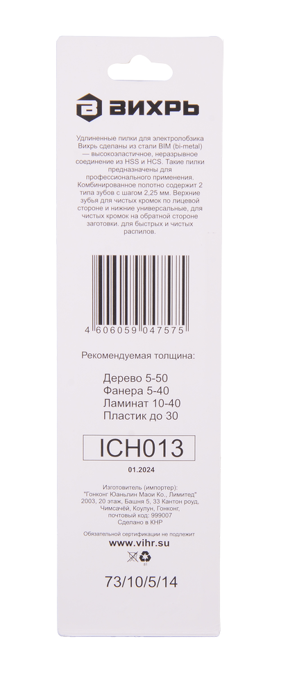 Длина рабочей части составляет 95 мм. Пилка ВИХРЬ Т308ВF способна распиливать дерево и ламинат.