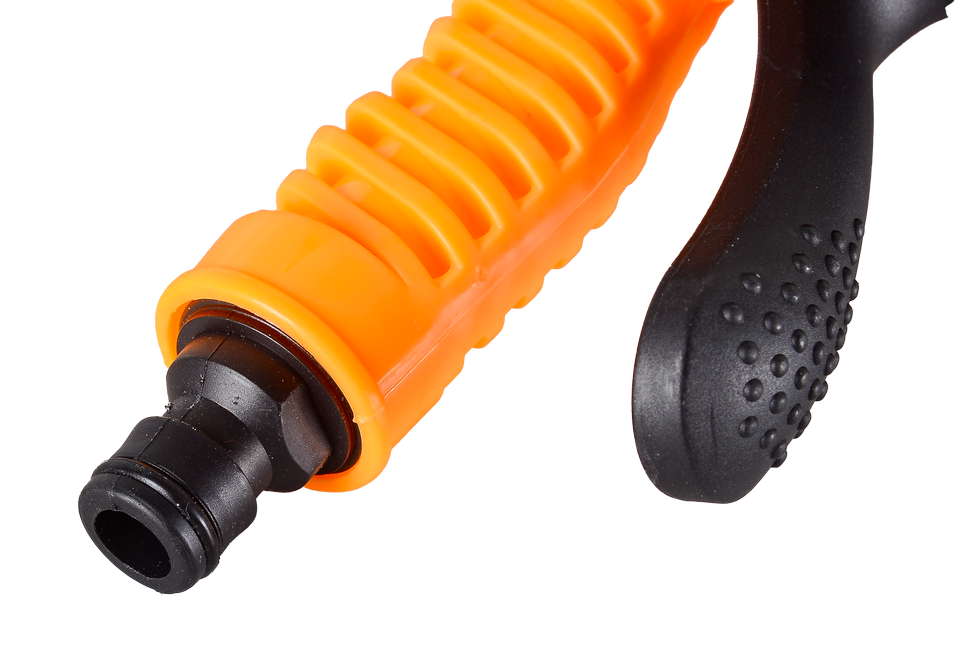 Распылитель выполнен из пластика и легко подключается к шлангу. Он имеет эргономичную рукоятку, которая служит для регулировки напора воды, что позволяет контролировать интенсивность полива. Это особенно важно при работе с молодыми растениями, которые не выдерживают сильного напора воды.