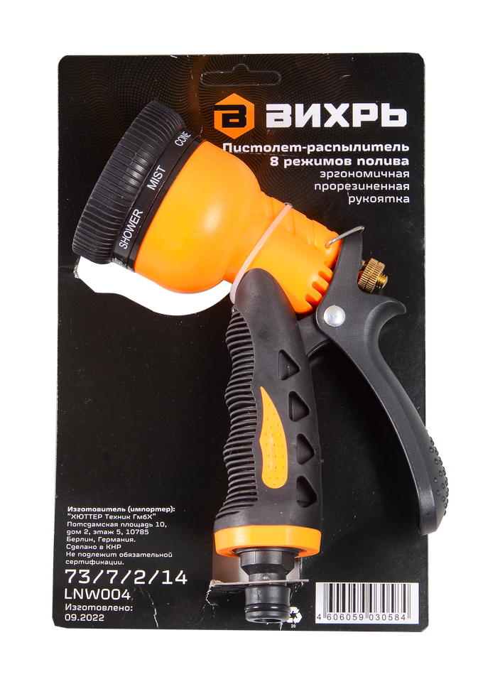 Пистолет-распылитель Вихрь позволяет регулировать интенсивность и характер полива растений на даче, в саду или на газоне. Он имеет 8 режимов полива, каждый из которых обеспечивает определенный вид полива: