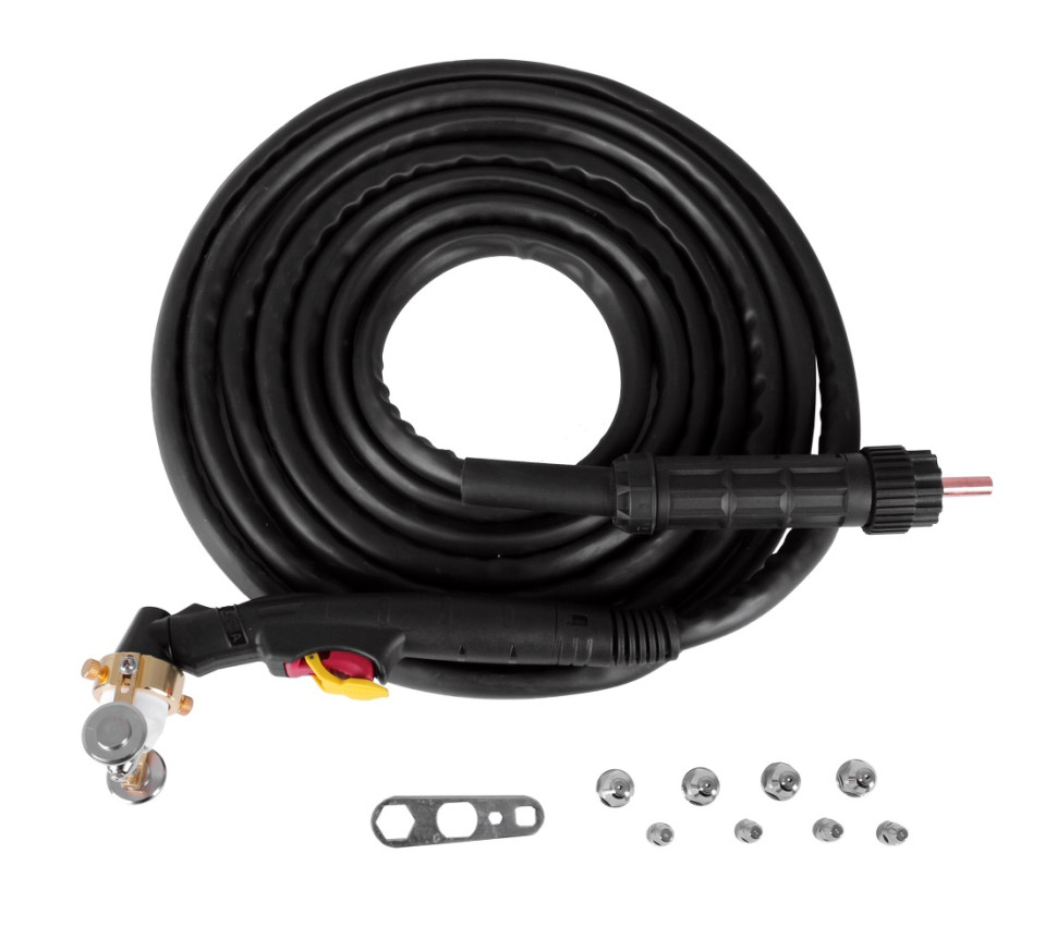 Плазменная горелка подходит для инверторов плазменной резки Ресанта ИПР-100. Длина кабеля составляет 6 м. Эргономичная пластиковая ручка позволяет надежно удерживать горелку в руке. Максимальная толщина реза 40 мм. Номинальный сварочный ток - 100 А.