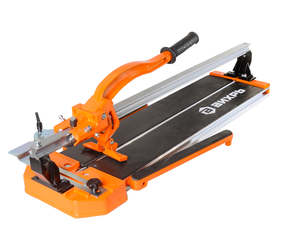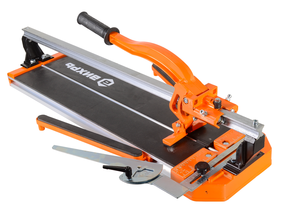 - Удобство и надежность: эргономичная конструкция плиткореза позволяет работать даже с плиткой большой ширины за счет боковой поддержки. Специальный угольник поможет отрезать плитку под нужным углом.