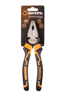 Плоскогубцы (пассатижи), 200мм., никелированные, двухкомпонентные рукоятки, Вихрь
