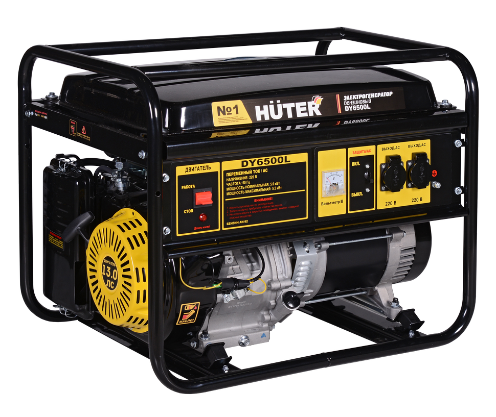 Генератор HUTER DY6500L оснащен ручным стартером, что предполагает возможность старта работы даже в неблагоприятных условиях. Также имеет защиту от перегрузок, перегрева, короткого замыкания и отсутствия или недостаточного уровня масла. Он выдаёт чистое, стабильное напряжение без скачков, что безопасно для чувствительной техники. Двигатель отличается повышенным ресурсом.