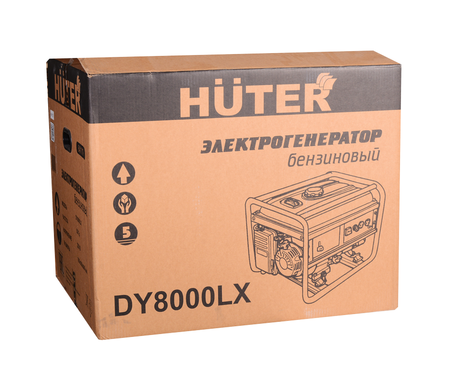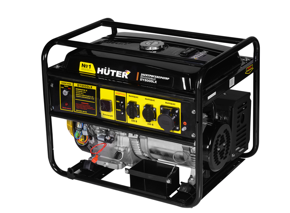 Компактный, надёжный и производительный для своего класса – так можно охарактеризовать портативный бензогенератор HUTER DY8000LX. Он оснащён 4-тактным одноцилиндровым бензиновым двигателем с воздушным охлаждением и электрической машиной – альтернатором, преобразующим механическую энергию в электричество. Модель относится к категории универсальных и может широко использоваться в качестве альтернативного источника переменного тока 220 В, 50Гц. Номинальная мощность агрегата – 6.5 кВт.