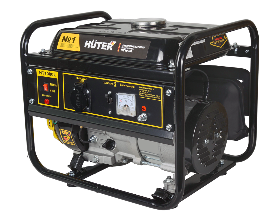 Электрогенератор HUTER HT1000L оснащён системами защиты от короткого замыкания и перегрузок, а также возможностью регулировать обороты двигателя, что существенно экономит топливо и рабочий ресурс агрегата. Стартер в модели ручной, а это значит, что он без проблем запускается в любых условиях. Сам генератор синхронного типа, щёточный. Номинальная мощность 1 кВт, напряжение – 220/230 В, сила тока – 50Гц.