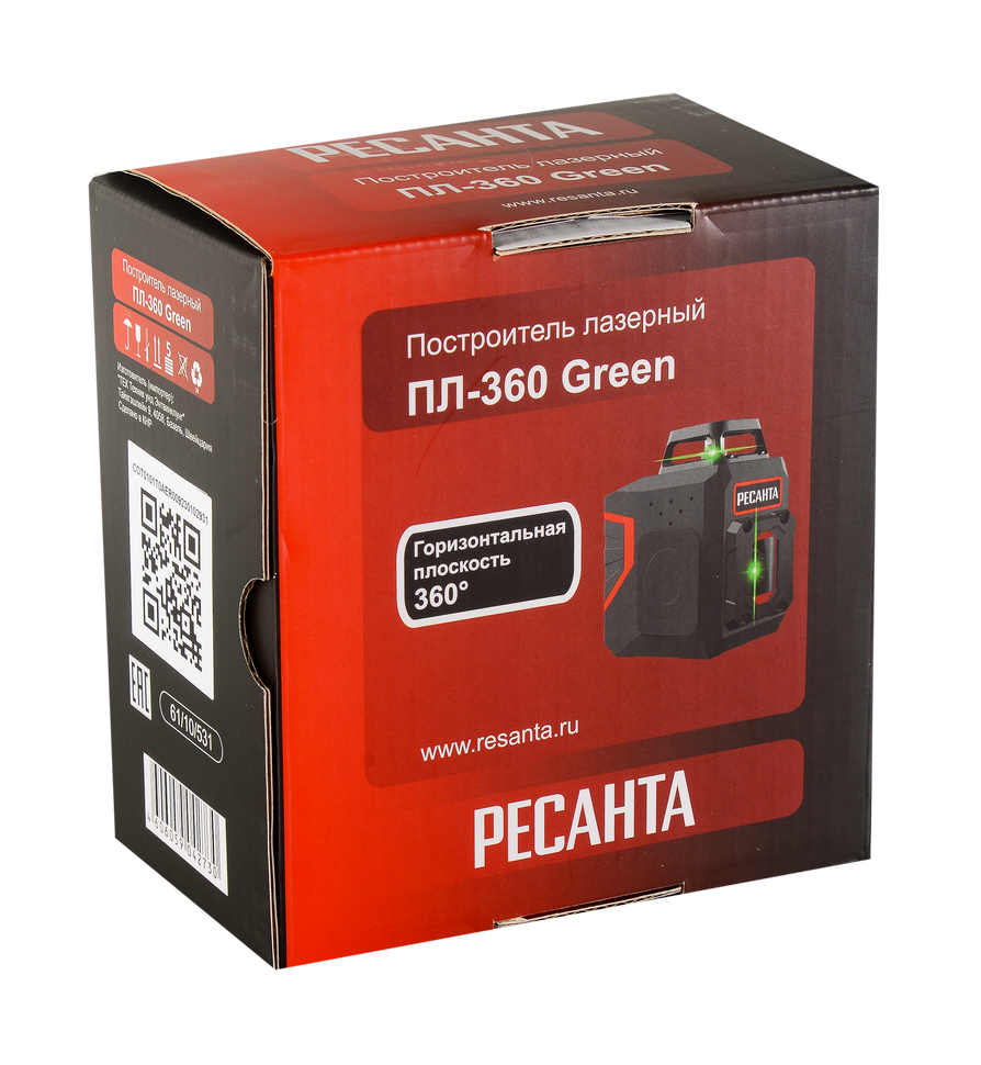 Лазерный уровень Ресанта ПЛ-360 Green с функцией самовыравнивания и рабочим диапазоном 30 м обеспечит построение ровных линий в горизонтальной и вертикальной плоскости, поможет осуществить разметку по периметру помещения, выверить правильность прямых углов.