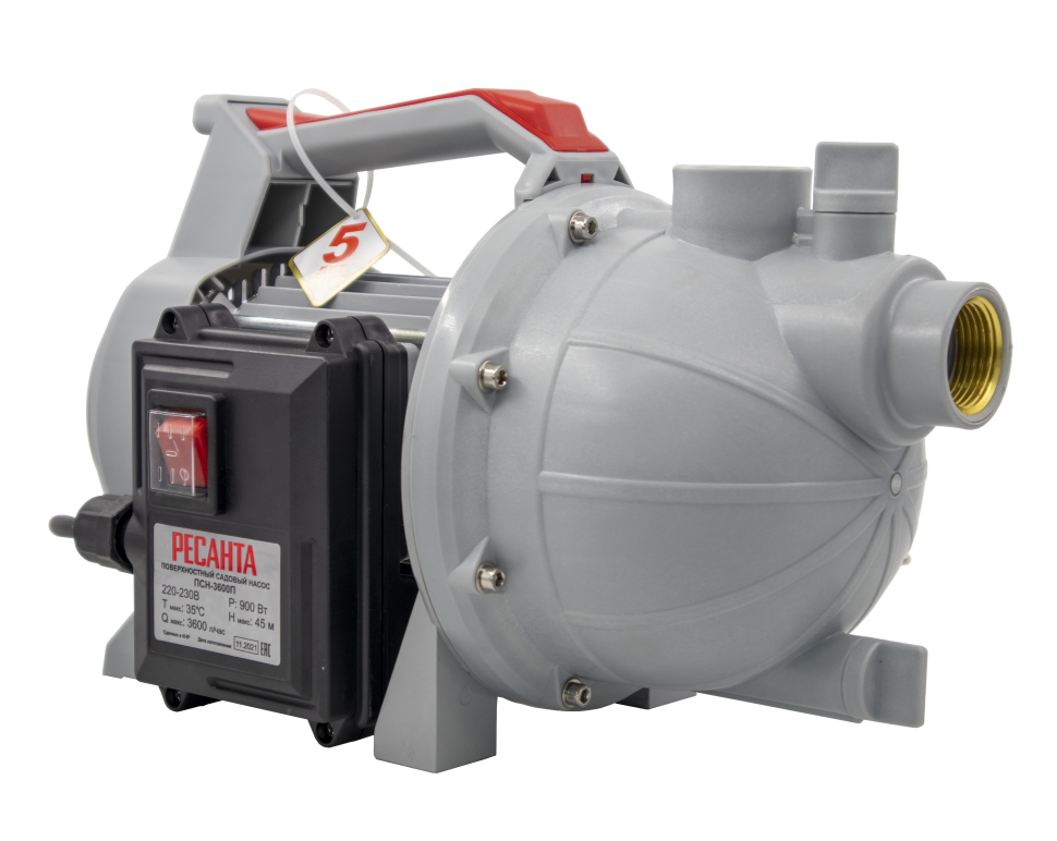 Поверхностный насос Ресанта СН-3600П отличается простотой в использовании, компактностью и экономичным энергопотреблением. Самовсасывающая модель используется для организации водоснабжения и откачивания жидкости. Насос имеет центробежную конструкцию и обеспечивает минимальный уровень шума в процессе работы. Корпус насоса выполнен из прочного композитного пластика. Он отличается устойчивостью к износу и образованию коррозии. Рукоятка обеспечивает удобную транспортировку. Защита двигателя от перегрева продлевает срок службы. Класс защиты IPX4 предотвращает попадание пыли и влаги в рабочие узлы. Внутренний диаметр входного и выходного отверстий G1 облегчает монтаж трубного соединения.
