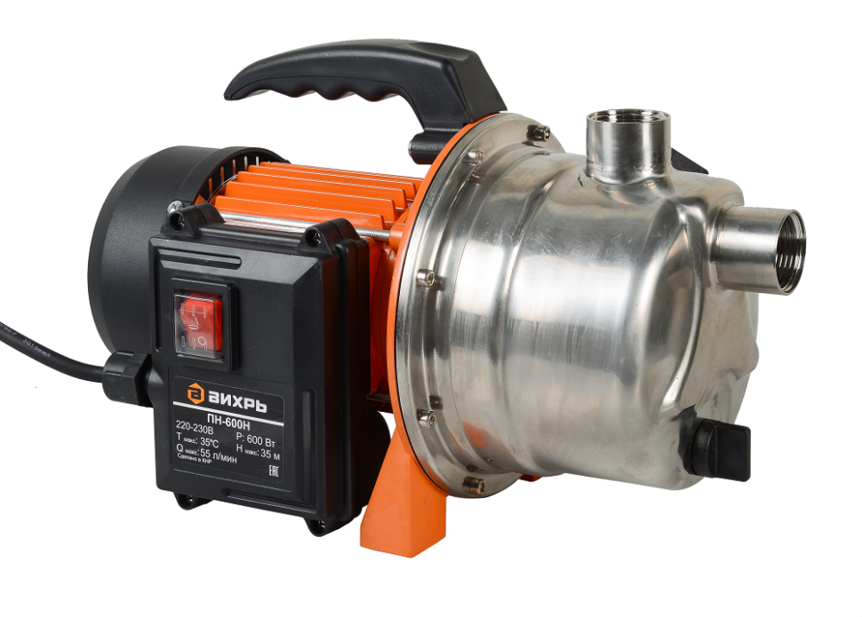 Вихрь ПН-600 относится к категории мощных поверхностных насосов. Электронасос представляет собой часть насосной станции и выполняет функцию поддержки оптимального уровня давления. Центробежный насос предназначен для орошения садового участка, огорода. Эффективное всасывание с максимальной глубины не более 9 м. Снабжен эжектром для самовсасывания с глубины.