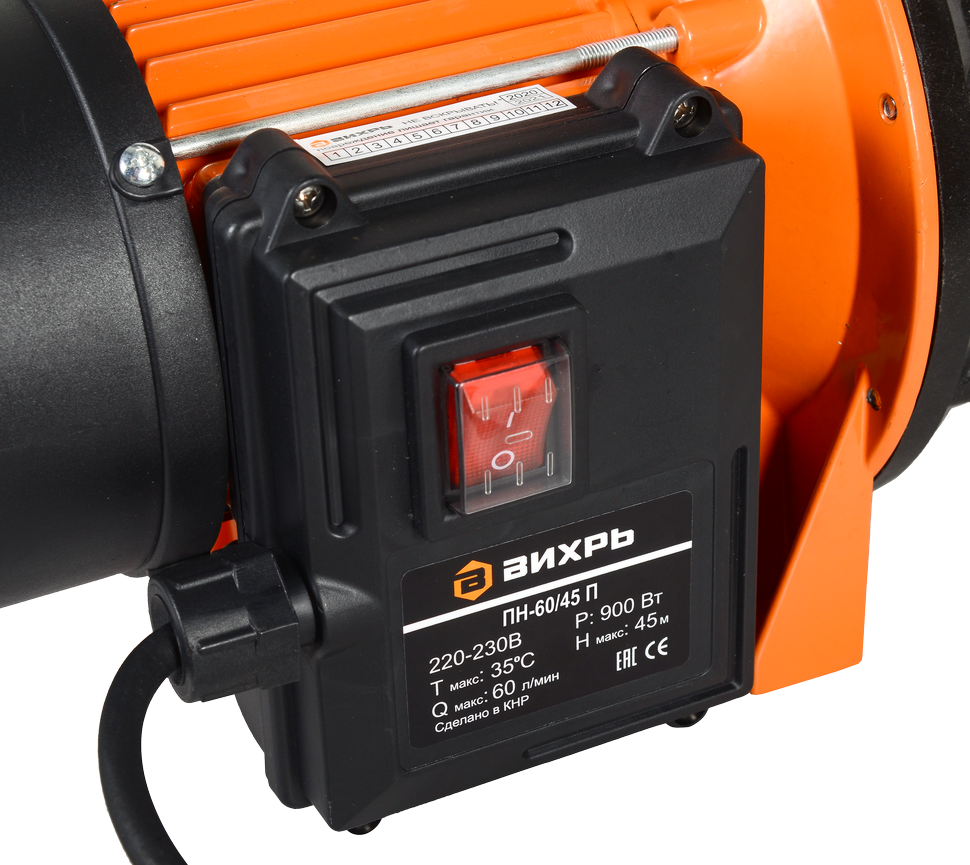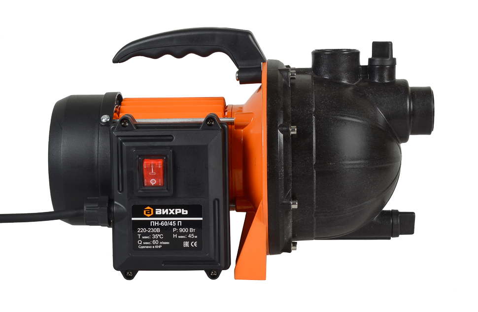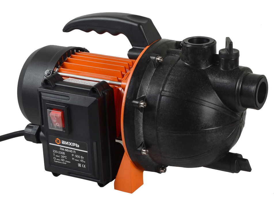 Поверхностный насос Вихрь ПН-60/45П мощностью 900 Вт обеспечит подачу воды из источника, пригодится для обеспечения дачи, участка, сада чистой водой.