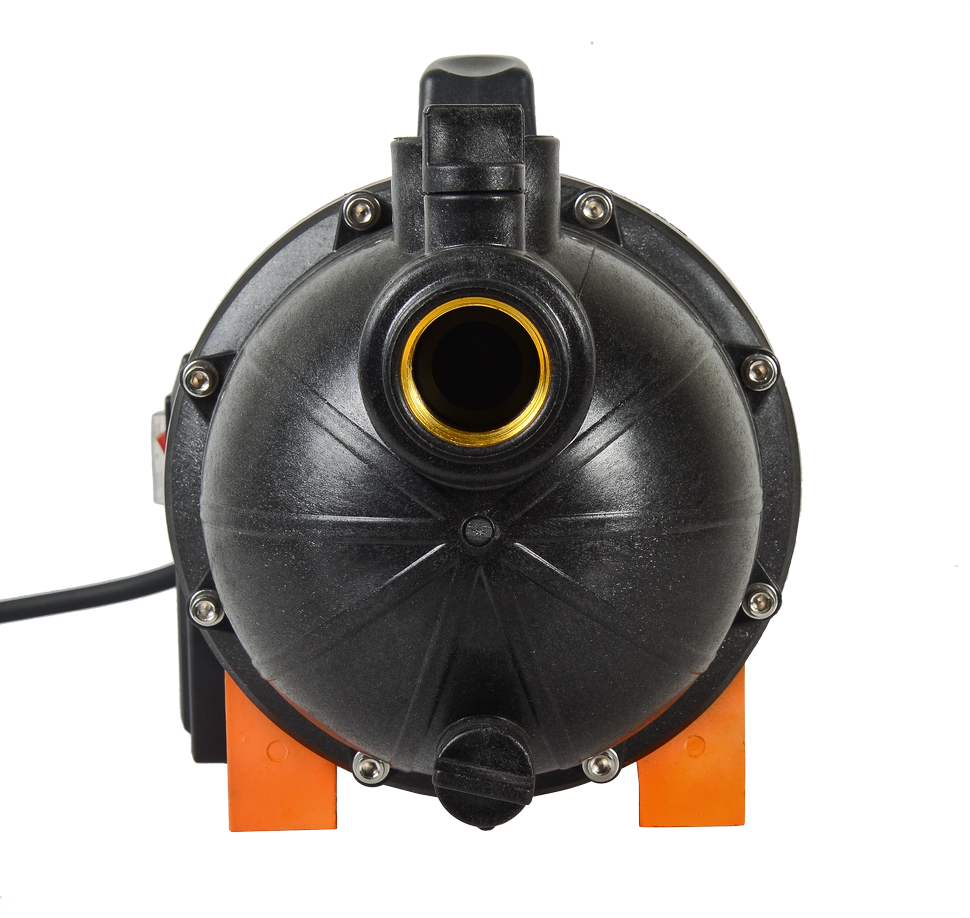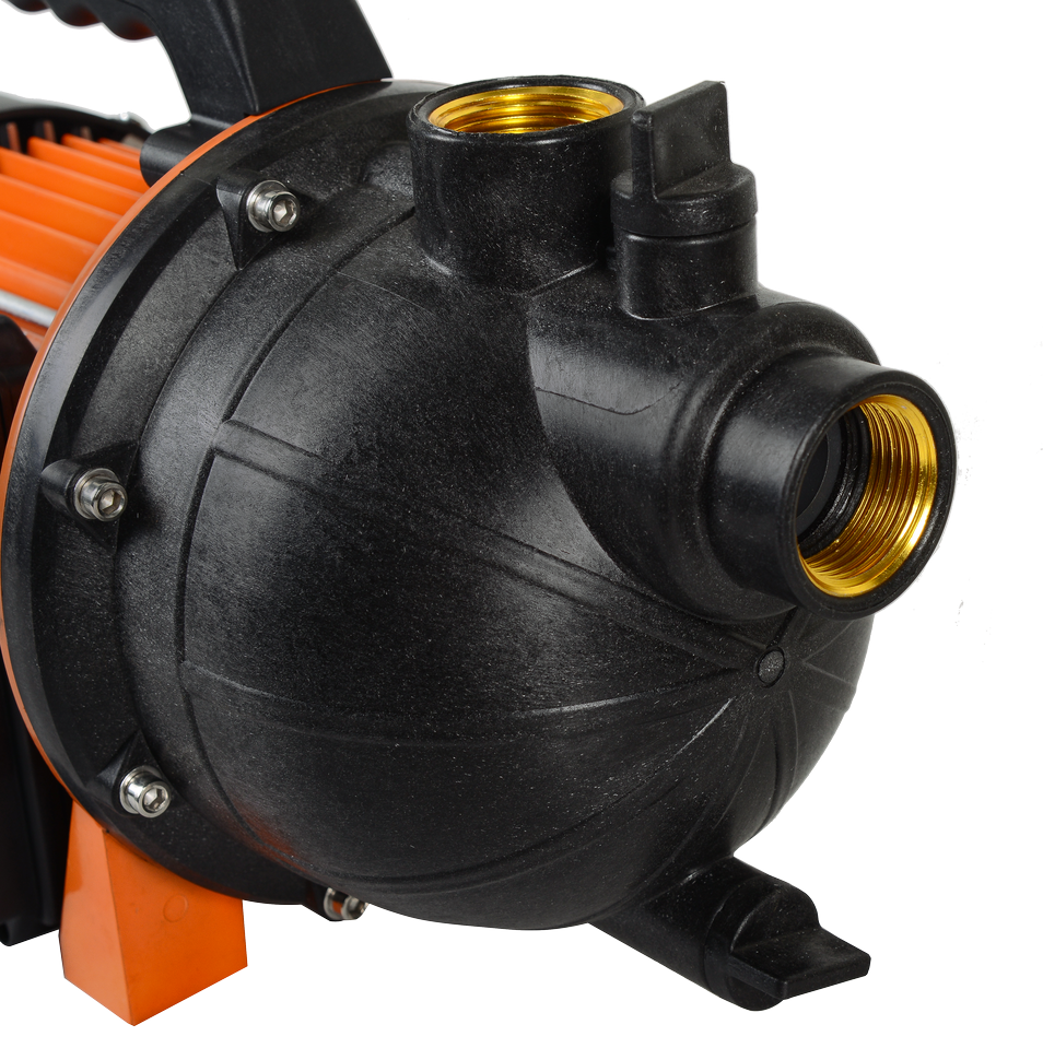Центробежный насос работает от электросети и оснащен асинхронным однофазным электрическим двигателем с короткозамкнутым ротором. Подъем воды осуществляется на максимальную высоту 45 м, производительность может достигать 60 л/мин. В конструкции предусмотрено наличие встроенного эжектора, благодаря которому обеспечивается функция самовсасывания и возможность подъема жидкости с 9-метровой глубины. Преимуществом модели с эжектором перед обычными насосами центробежного типа являются сниженные требования к чистоте воды и наличию в ней растворенных газов. Допускается присутствие твердых частиц, концентрация которых не должна превышать 150 г/м³. Абразивные, волокнистые и химические включения могут повредить механизм. Насосная часть сделана из пластика. На патрубках предусмотрена металлическая резьба. Поверхностный насос имеет удобную ручку для переноски и защищенную пластиком кнопку включения.