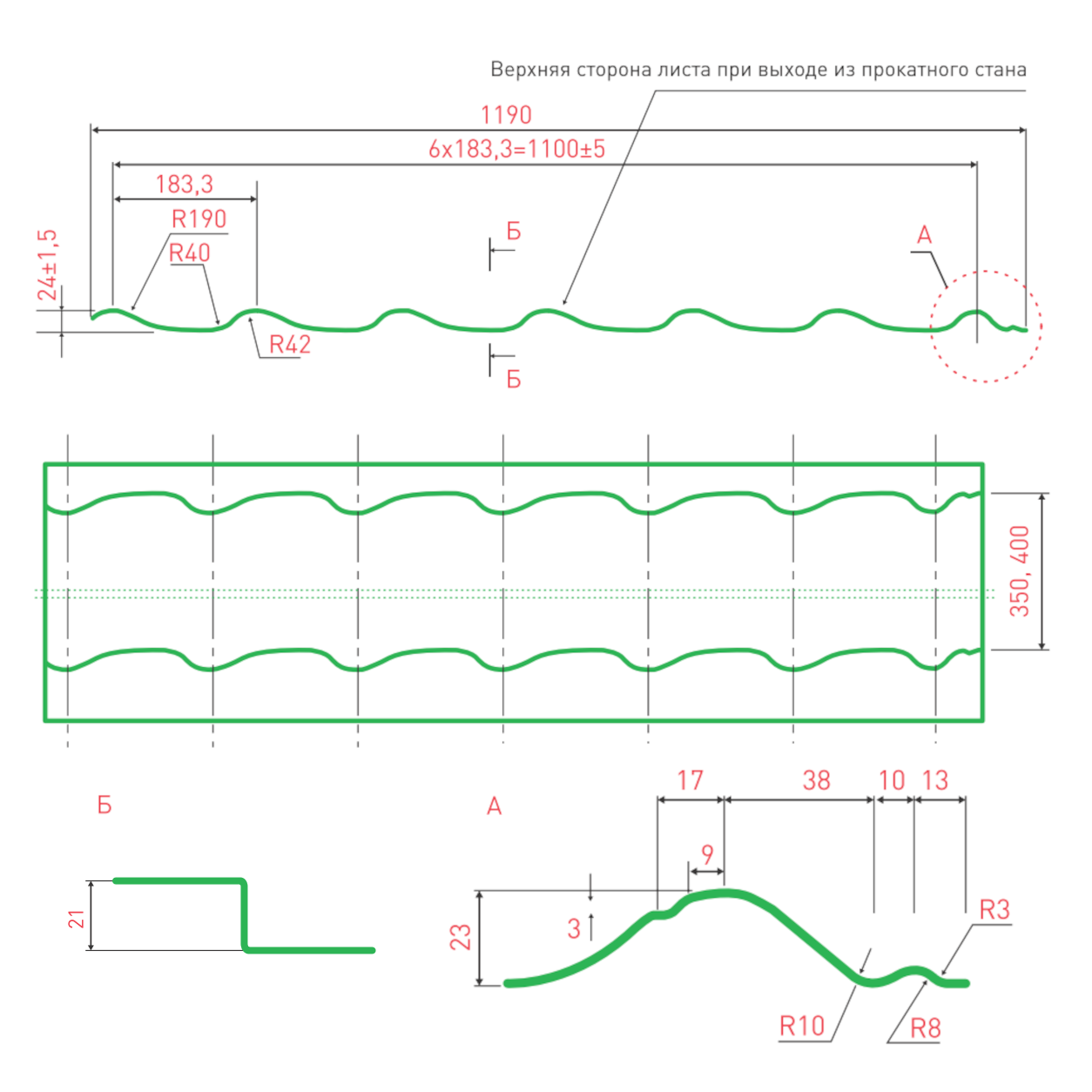 Профиль металлический типа "Монтеррей"-21 RAL 8017 0,45*1190*