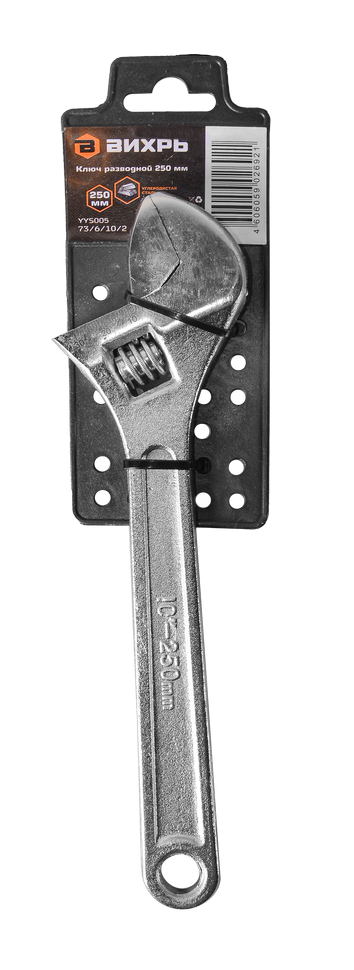 Разводной ключ Вихрь 250 мм - ручной инструмент, который используется для работы с трубами, фитингами и крепежом различных диаметров. Он позволяет быстро и легко регулировать расстояние между губками. Ключ оснащен шкалой для подбора размера, максимальное расстояние между губками 30 мм.