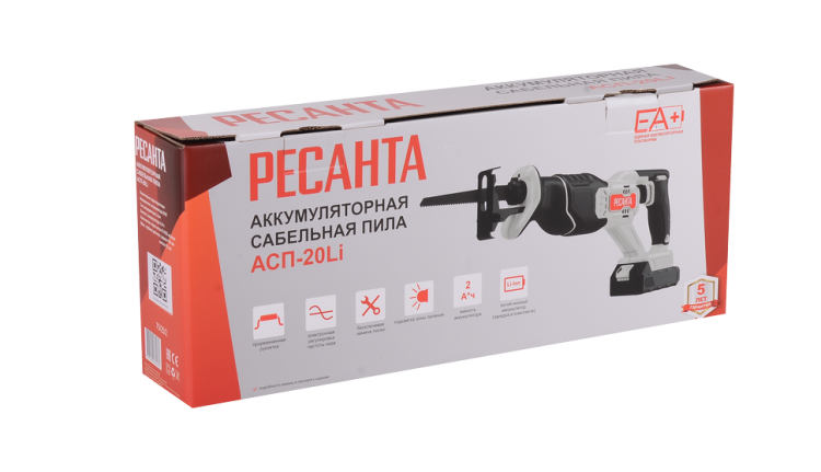 Сабельная пила аккумуляторная Ресанта АСП-20Li ЕА+ (в комплекте 1 АКБ и ЗУ)