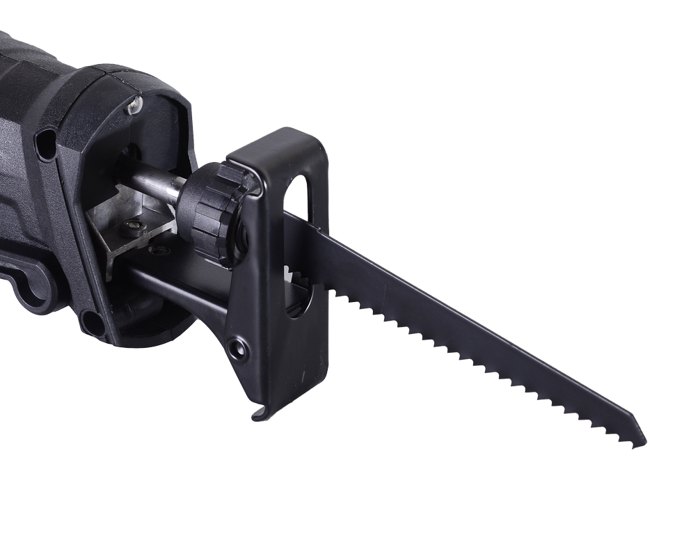 Пила работает по принципу ручной ножовки, но наличие электропривода позволяет обойтись без особых физических усилий. Включение производится посредством нажатия кнопки, которую можно зафиксировать, чтобы не держать всё время. В комплектацию инструмента входит пилка по дереву, которая обеспечит глубину распила 150 мм. Наличие быстросъемного универсального патрона позволяет быстро произвести замену. При установке соответствующей пилки можно производить распил металла на глубину 15 мм. Благодаря электронной регулировке частоты можно настраивать скорость пиления под разные материалы.