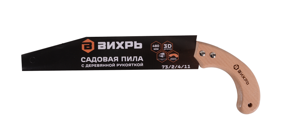 Садовая пила Вихрь – это специальный инструмент, предназначенный для ухода за растениями, такими как деревья и кусты. Она имеет деревянную ручку, которая обеспечивает удобство и устойчивость во время работы, даже если она занимает много времени. С лезвием длиной 350 мм пила легко справляется с ветками разной толщины, обеспечивая аккуратность и скорость при распиле.