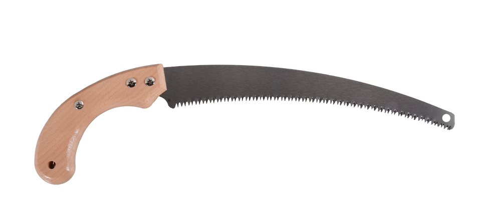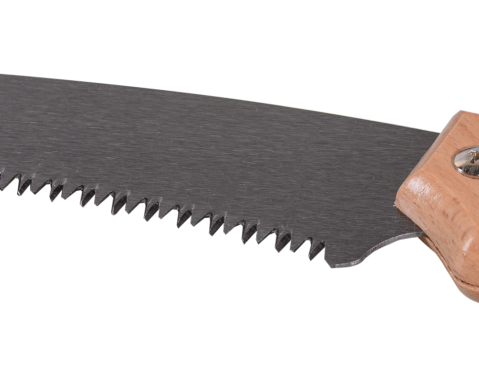 Классическая ручка из дерева обеспечивает прочное удержание и комфорт в процессе использования. Удобная форма ручки способствует уменьшению нагрузки на руку, что особенно ценно при продолжительных садовых работах. Трехмерная заточка зубьев в ножовке позволяет резать как к себе, так и от себя, что делает ее очень острой и эффективной. Такая заточка обеспечивает более плавный и точный рез, уменьшая усилие, необходимое для пиления. Инструмент универсален и подходит для обработки как сухих, так и свежих веток деревьев и кустов.