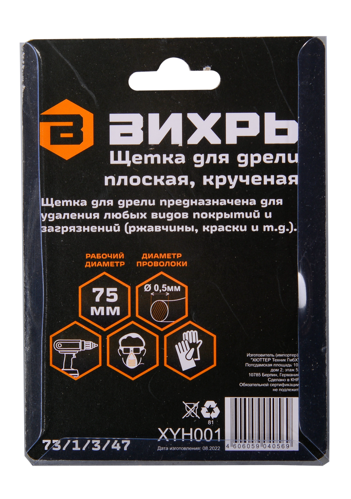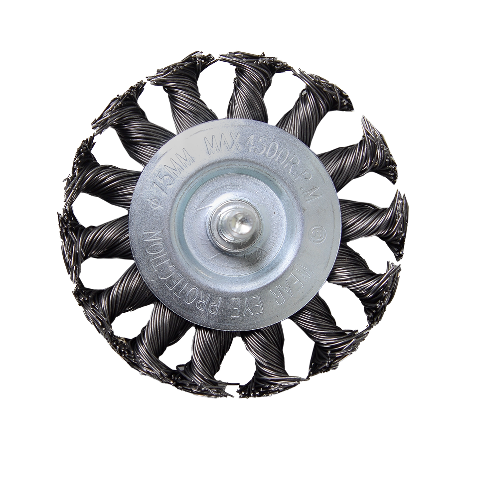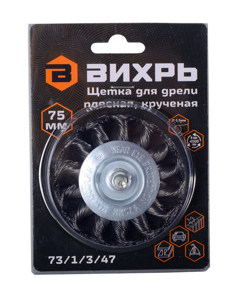 Щетка для дрели Вихрь плоская, крученая, диаметром 75 мм предназначена для различных видов очистки и обработки поверхностей.