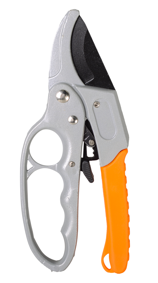 Секатор ВИХРЬ 200мм оснащен возвратной пружиной, которая облегчает работу с инструментом и уменьшает усталость руки, позволяет работать одной рукой. Он также имеет храповый механизм, который обеспечивает точную и чистую резку даже толстых веток без дополнительных усилий.