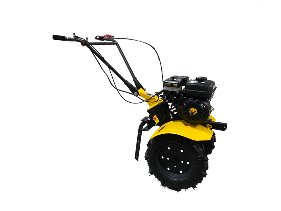 Двухступенчатая коробка передач (2 передачи вперёд, 1 передача назад) обеспечивает оптимальную скорость движения и эффективность обработки. Колеса размером 4x10 позволяют уверенно передвигаться по различным видам почвенных покрытий.