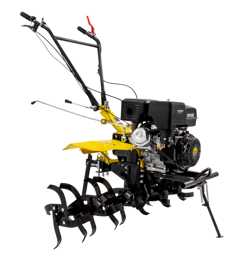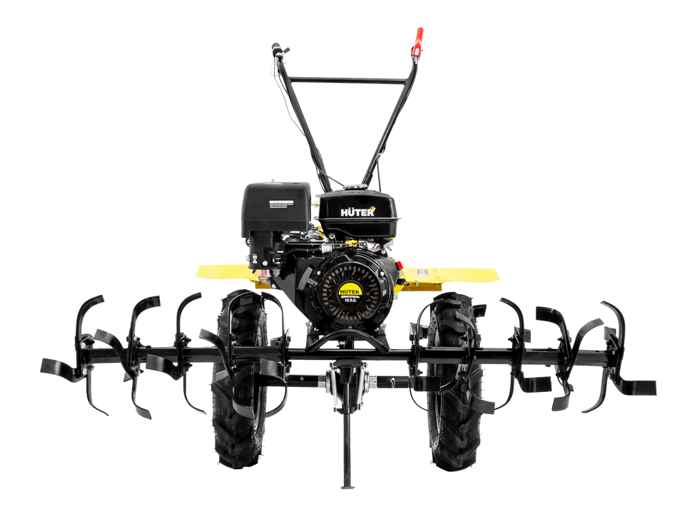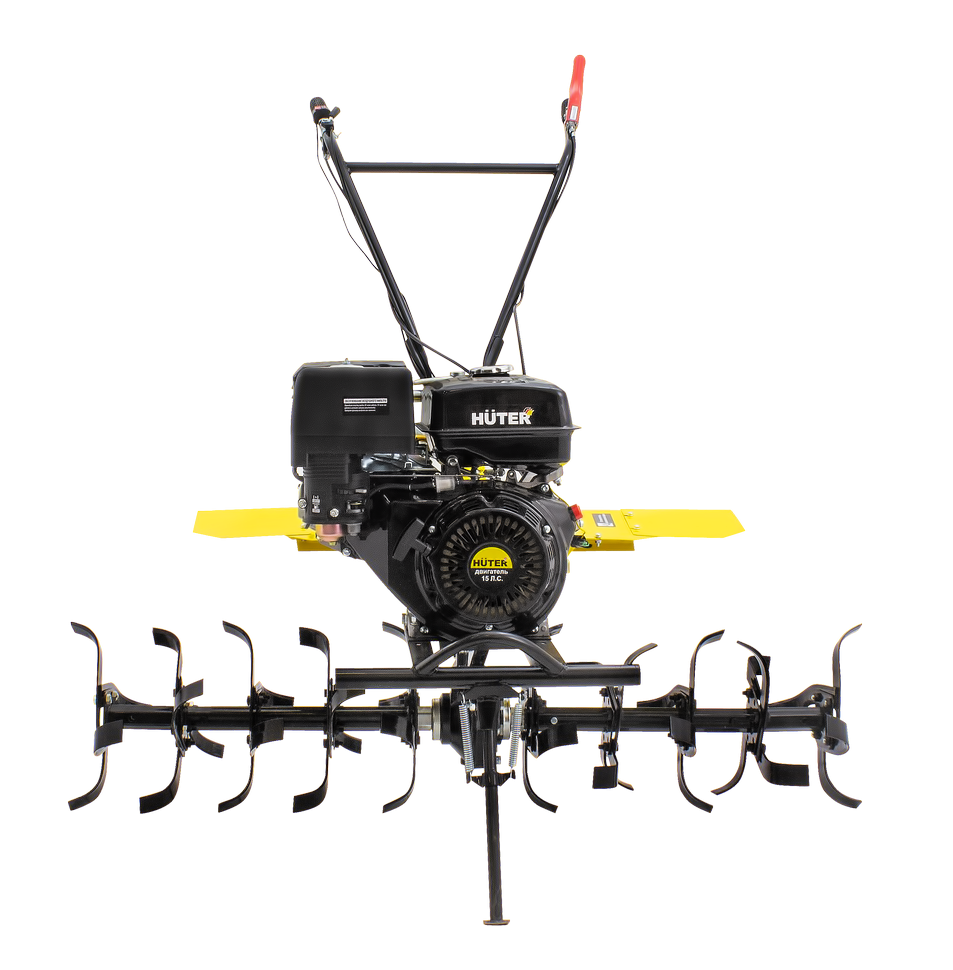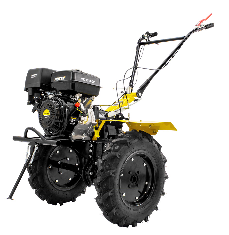 В модели HUTER MK-15000 P установлены четырехтактный ДВС 15 л.с. с воздушным охлаждением. Бензобак рассчитан на 6 л. Разрешено заливать топливо не ниже АИ92. Маслонаполненный воздушный фильтр, хромированная поршневая группа и редуктор в масляной ванне и чугунном корпусе обеспечивают надежность и длительную эксплуатацию сельскохозяйственной машины.