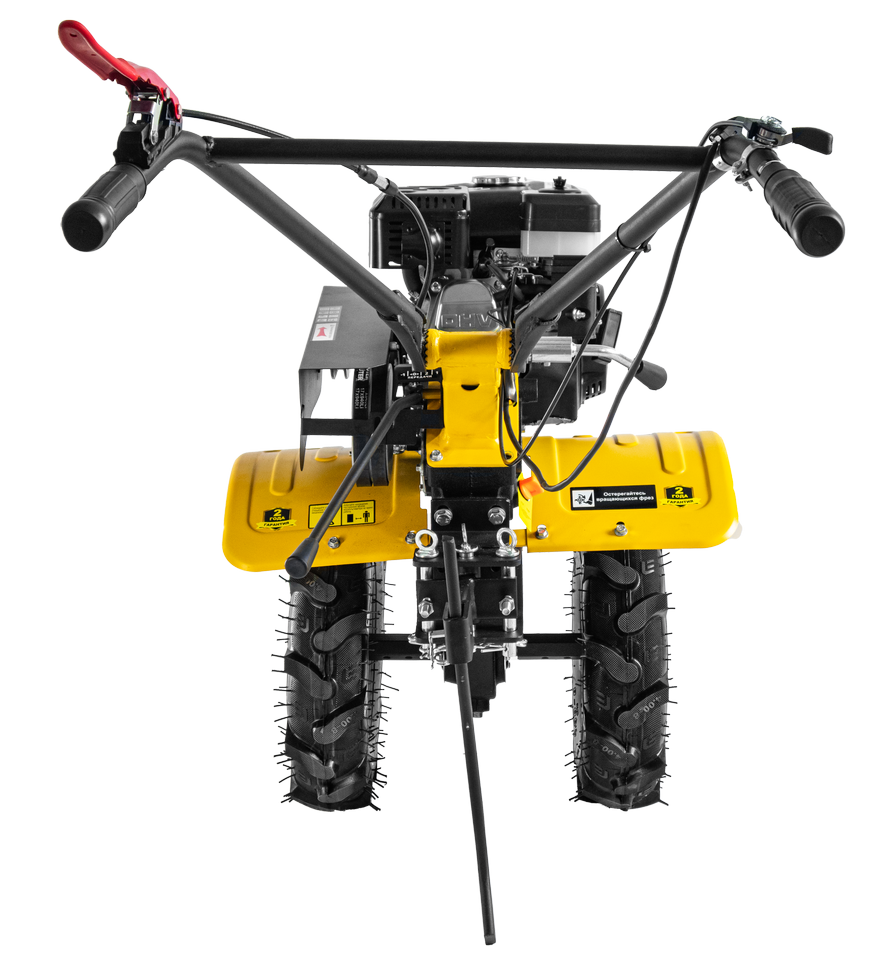Сельскохозяйственная машина работает от надежного бензинового двигателя с автоматической регулировкой частоты вращения мощностью 7,5 л. с. Потребление топлива составляет 375 г/кВт в час, вместительность бака – 3,6 л.