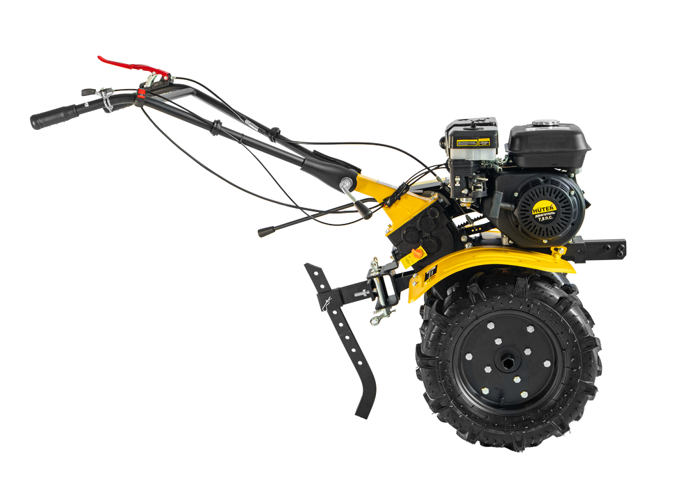 Сельскохозяйственная машина данной модели имеет колеса с агрессивным протектором, что позволяет без усилий перевозить грузы по любой почве. Наличие пониженной передачи дает возможность работать с активным навесным оборудованием. Широкие крылья на HUTER МК-7800P-4х2 обеспечивают надежную защиту оператора от посторонних предметов, а регулятор частоты вращения мотора упрощает эксплуатацию.